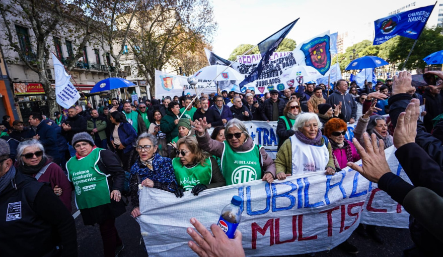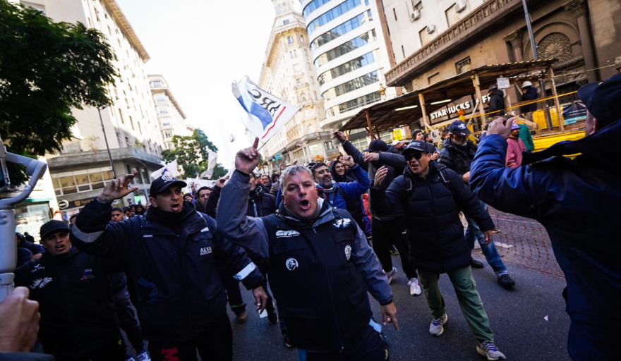 Una masiva movilización de federaciones y sindicatos del transporte, organizaciones territoriales, movimientos populares, trabajadores de la economía popular y gremios del ámbito estatal, industrial y de servicios se congregaron este miércoles en el microcentro porteño para movilizar al Ministerio que dirige Federico Sturzenegger, en el marco de la jornada de lucha para repudiar los decretos 340/25 y 273/25, que atentan contra la industria nacional, desregulando la marina mercante y atacando a la industria naval. Además se exige la urgente reapertura de la paritaria, un aumento que permita una recomposición salarial para todo el sector público, y el rechazo a la privatización de empresas públicas y a la venta de inmuebles del Estado