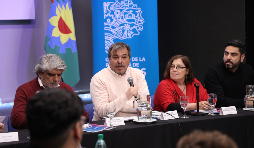 Por la cartera laboral y junto al ministro Correa estuvieron el secretario Ejecutivo de la COPRETI, Nicolás Viñes, la jefa de Gabinete, Cecilia Cecchini, y la subsecretaria de Empleo, Cecilia Soiza.