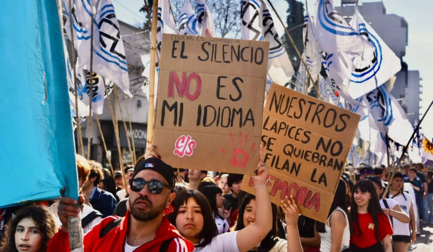 Joana Gimenez, secretaria de Juventudes de la CTA Autónoma Nacional, indicó que “estudiantes, trabajadores y trabajadoras salimos a la calle para decirle a este gobierno nacional y al neoliberalismo que no vamos a permitir que avancen sobre los derechos del pueblo. Seguimos haciendo memoria y reivindicando con toda la fuerza del pueblo organizado que queremos y necesitamos una patria con justicia, soberanía y liberación nacional”.