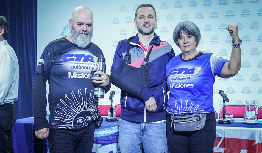 De Isasi señaló que “Desde la CTA Autónoma y desde la CTA de los Trabajadores, en unidad, repudiamos el accionar del Poder Judicial y del poder político de Misiones, que intenta disciplinar al movimiento obrero organizado que lucha por mejorar las condiciones de trabajo, con la judicialización y criminalización de la protesta, y estos dos compañeros son el ejemplo de esa injusticia, por eso exigimos el desprocesamiento, basta de persecución a los luchadores y exigimos realmente que se resuelva el problema de fondo que son los salarios y las condiciones laborales de los trabajadores y las trabajadoras de Misiones”