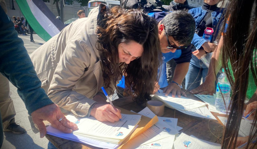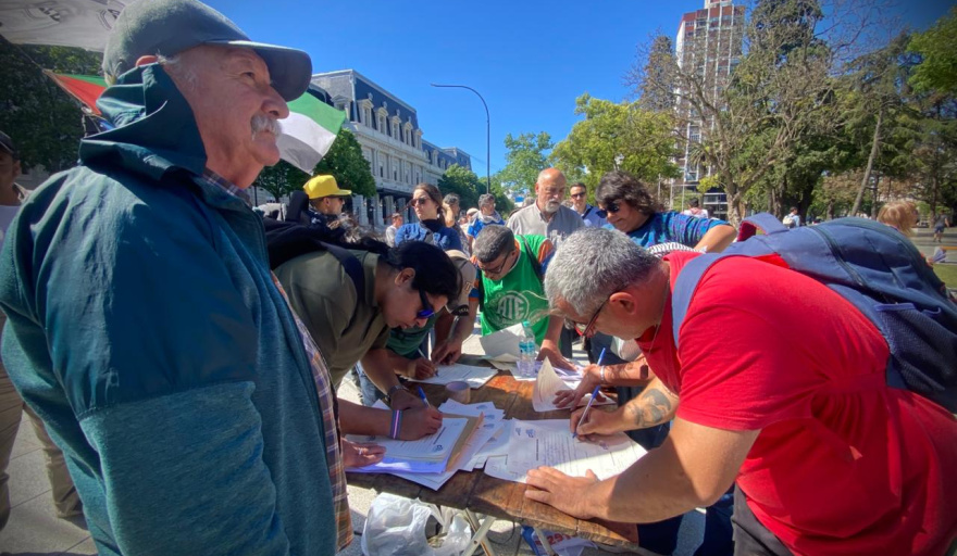"Estamos realizando una acción de solicitud simbólica de la nacionalidad palestina como muestra de solidaridad con su pueblo, que está siendo expulsado de su tierra a través de un genocidio llevado adelante por el gobierno sionista de Israel", expresaron desde la Multisectorial.