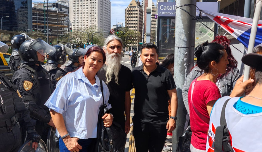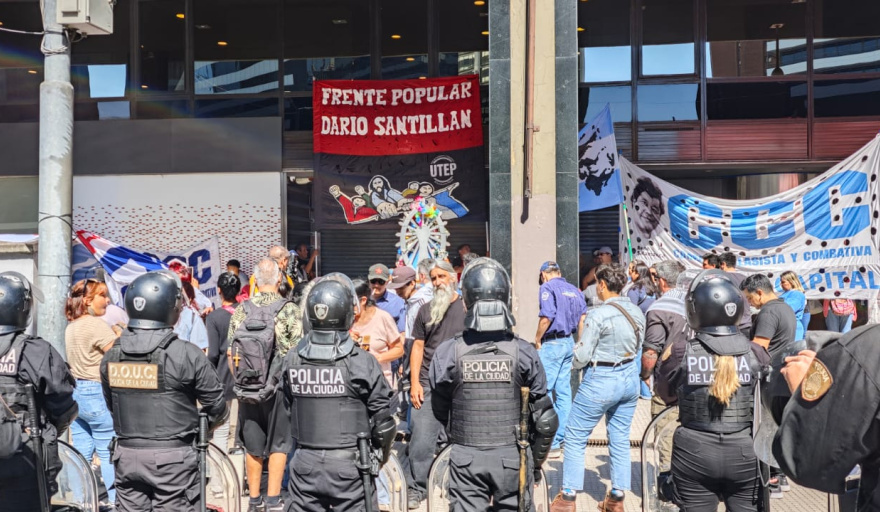 La protesta, que contó con la custodia de un desmedido operativo policial, fue convocada por un conjunto de agrupaciones, entre ellas la Federación Nacional Territorial (FeNaT) de la CTA, la Corriente Clasista y Combativa, el Frente Popular Darío Santillán y otras.