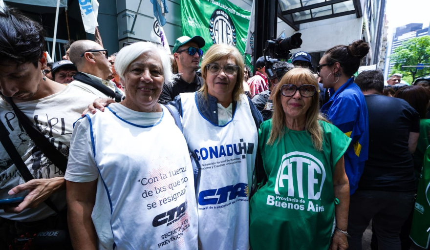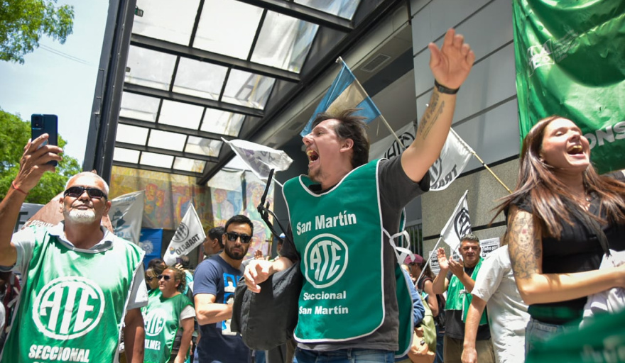 Hugo “Cachorro” Godoy, titular de la CTA Autónoma, participó de la manifestación y advirtió: “La motosierra pasa por los organismos que cuidan a los sectores populares. Es una decisión muy importante la de ATE de estar haciendo este paro nacional y esta movilización que acompañamos desde la CTA porque solo la lucha le pondrá freno a estos mandatos del Fondo Monetario Internacional y del presidente Trump. No podemos permitir que nuestro país pase a ser una colonia”