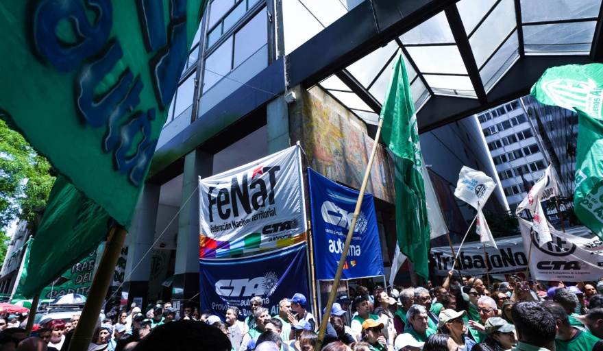 Desde varios distritos de la provincia de Buenos Aires organizaciones sociales, de FeNaT, gremios de la actividad privada y seccionales de ATE confluyeron en la movilización ante la secretaría de Trabajo de la Nación.