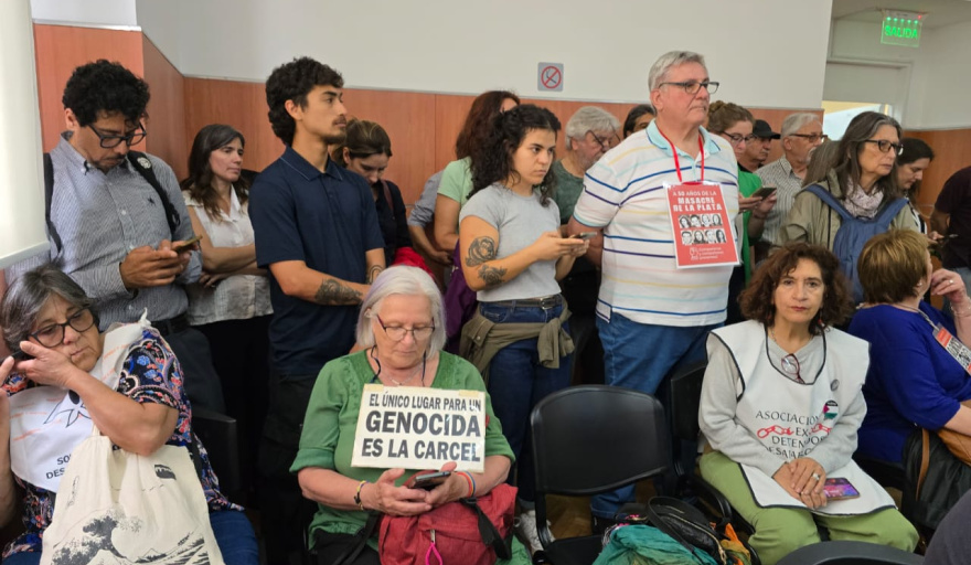 «Para la CTA, como para los organismos de derechos humanos y las organizaciones populares, el único lugar posible para un genocida es la cárcel. Este reclamo lo venimos a expresar frente a los jueces y frente a toda la sociedad», expresó María José Cano, Directora de Derechos Humanos de la Central. La acompañaron en la delegación de la CTA Autónoma Rosario Hasperué, Secretaria de Derechos Humanos de CTA Buenos Aires, y Emiliano Huaravillo, Secretario General de la Regional La Plata de la CTA.