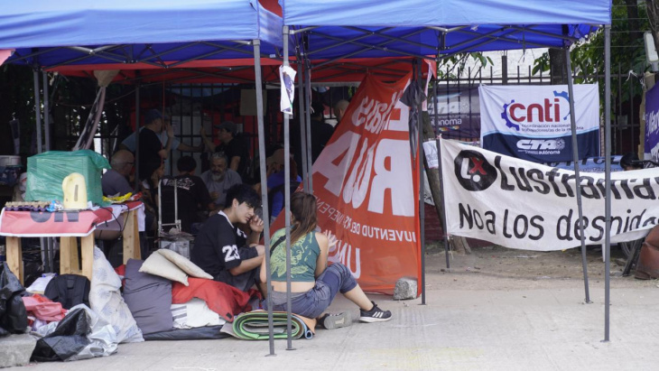 El referente gremial destacó la solidaridad recibida: “Hoy por hoy nos estamos manteniendo con la ayuda y la solidaridad de distintas organizaciones, sindicatos y agrupaciones; nos cocinamos entre nosotros, estamos a la intemperie, pero con mucha moral y haciéndonos el aguante.”