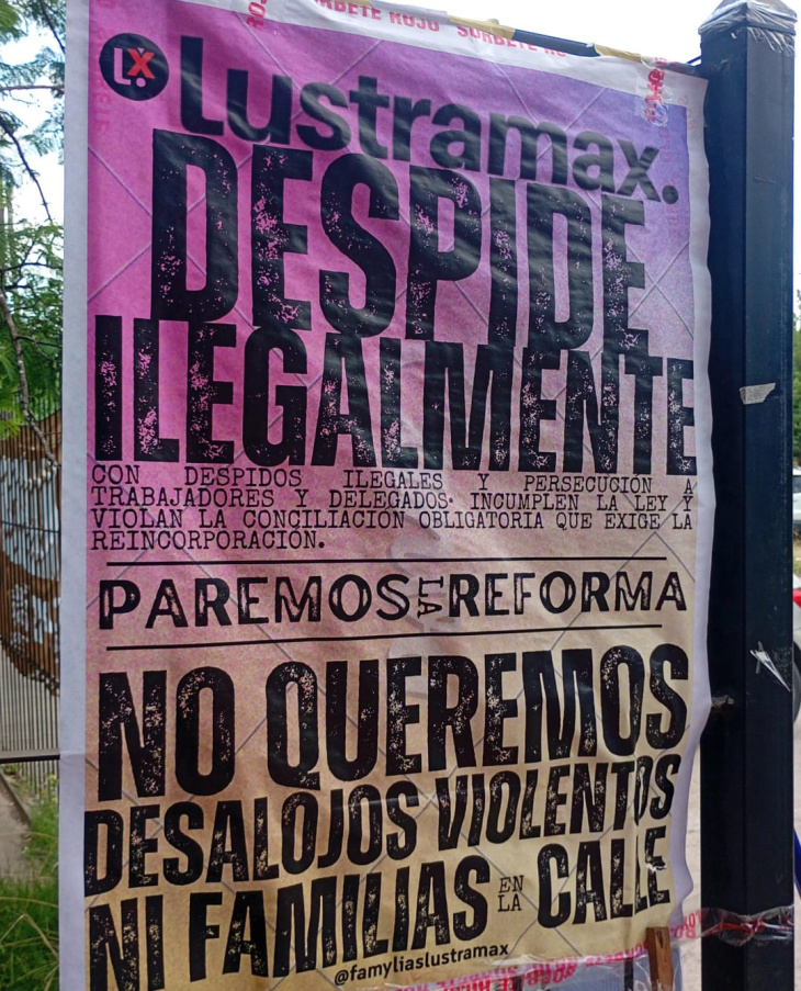 Mientras el conflicto escala y se agrava, los representantes sindicales de Lustramax denuncian despidos arbitrarios, persecución sindical e incumplimiento de derechos laborales, en el marco de un supuesto Proceso Preventivo de Crisis (PPC) presentado por la firma. Mientras la empresa alega dificultades económicas, los empleados sostienen que no existe una crisis real y que el conflicto forma parte de una estrategia de disciplinamiento laboral.