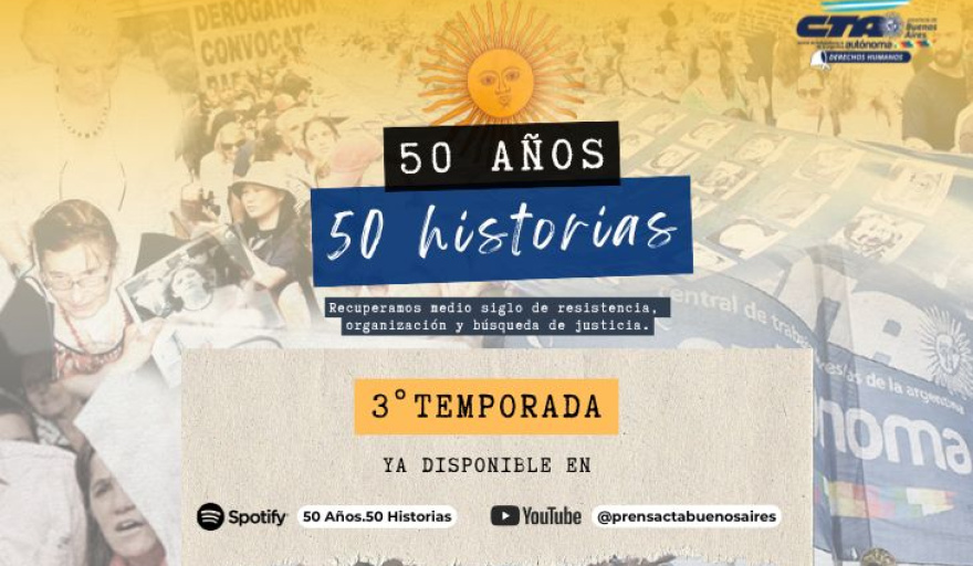 El trabajo, realizado por las Secretarías de Derechos Humanos y de Comunicación de la CTA Autónoma bonaerense, que se encuentra disponible en el canal de youtube de la CTA bonaerense y en “50 años. 50 historia” en Spotify, llega a su tercera temporada con los siguientes programas: