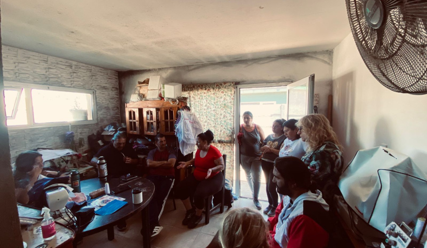 Durante la visita también se conoció el proyecto para conformar la cooperativa de trabajo Maranata, impulsada por dos talleres de costura donde seis personas diseñan, confeccionan y venden delantales escolares. Y el vivero donde trabajan dos compañeras.