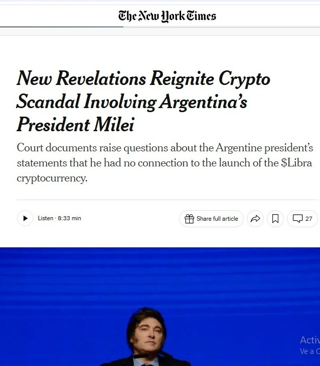 La escalada de corrupción de La Libertad Avanza parece no tener fondo. A este engranaje de revoleo de préstamos sin control se suma que esta semana el New York Times dedicó media página a Milei y su involucramiento directo en la estafa del caso $LIBRA, amplificando la polémica a nivel internacional.
