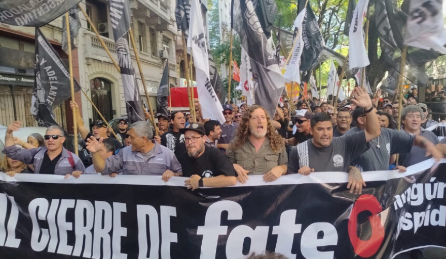 El dirigente indicó además que “marchamos junto a los trabajadores del SUTNA, que es el sindicato de base de la fábrica, bajo la consigna ‘ reapertura de la fábrica FATE; reincorporación de los trabajadores y trabajadoras y pago íntegro de todos sus salarios”